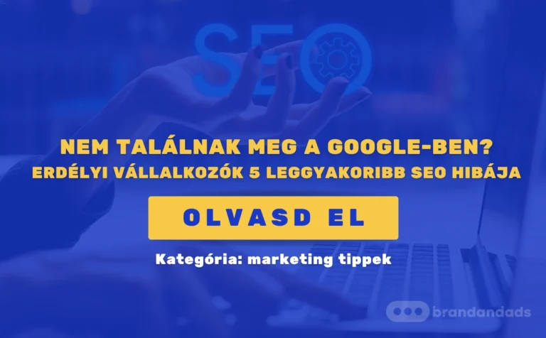 GYARAPÍTSD TUDÁSODCIKKEINKKELÖsszesMarketing tippek Online marketing ügynökség Erdély | 5 tipp a kiválasztáshoz 2026-ban 2026.02.07. Marketing tippek Online Marketing Stratégia 2026 | 8 lépés erdélyi cégeknek 2026.01.11. Marketing tippek Nem találnak meg a Google-ben? – Erdélyi vállalkozók 5 leggyakoribb SEO hibája 2025.08.15. Marketing tippekKÉRJ EGYEDI ÁRAJÁNLATOTPhoneEz a mező az érvényesítéshez van és üresen kell hagyni.Ahogy szólíthatunk(Kötelező)Telefonszám:(Kötelező)Email cím:(Kötelező) Cég neve:(Kötelező)Facebook / Insta oldal: Weboldal: Mit kell tudnunk a projektről?Milyen szolgáltatást szeretnél igénybe venni?(Kötelező) Komplex online marketing kampány Stratégiai tervezés Facebook és Instagram hirdetéskészítés Kisarculati elemek (logó, névjegykártya, levélpapír) Nagyarculati elemek (logó, névjegykártya, levélpapír, banner, katalógus...) Rendezvény teljes körű arculat (konferencia, fesztivál, esküvő) Csomagolástervezés Kiadvány-, könyvszerkesztés Tanácsadás Google Ads hirdetések WeboldalkészítésAdatkezelési Nyilatkozat(Kötelező) Elolvastam az adatvédelmi tájékoztatót és hozzájárulok, hogy a megadott elérhetőségeken felvegyétek velem a kapcsolatot.(Kötelező)